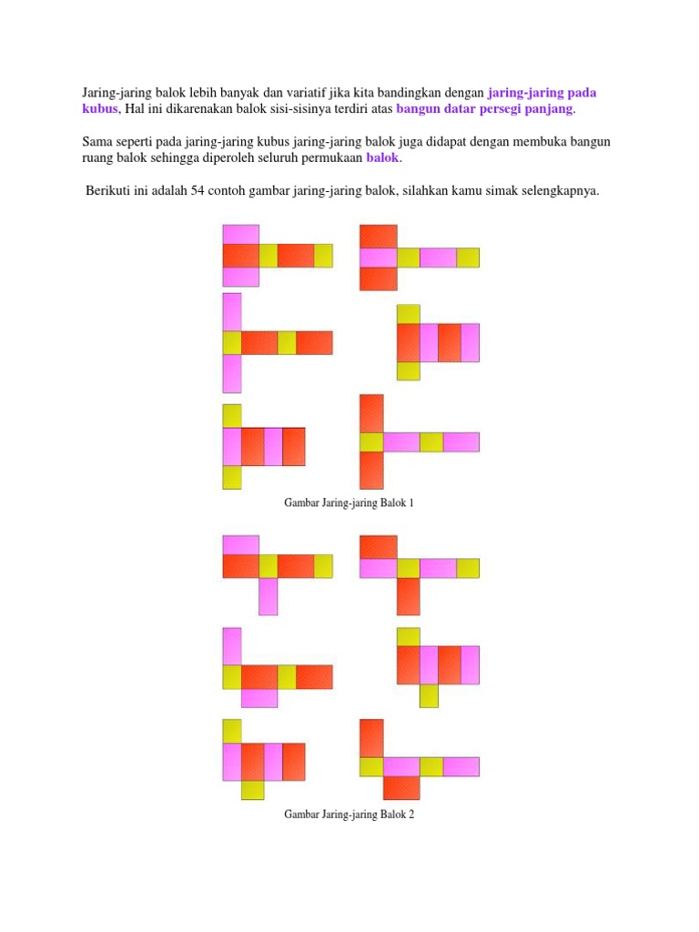 Lihatlah apakah jaring yang kamu buat dapat membentuk sebuah kubus. Diterbitkan olehani subhan telah diubah 7 tahun yang lalu. Setelah itu, guntinglah kertas kartonmu menurut ruas garis terluar dari. Diposting oleh unknown pada tanggal october 23, 2017. 2 definisi balok balok adalah bangun ruang yang dibatasi oleh dua bidang (segi n) yang sejajar dan kongruen sebagai bidang alas dan bidang atas, serta dibatasi oleh bidang bidang tegak yang.